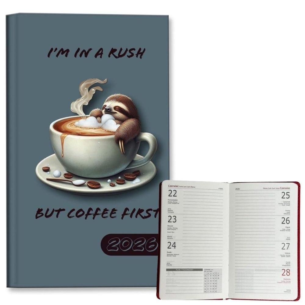 Kalendarz 2026 A6 tygodniowy Leniwiec Kawa