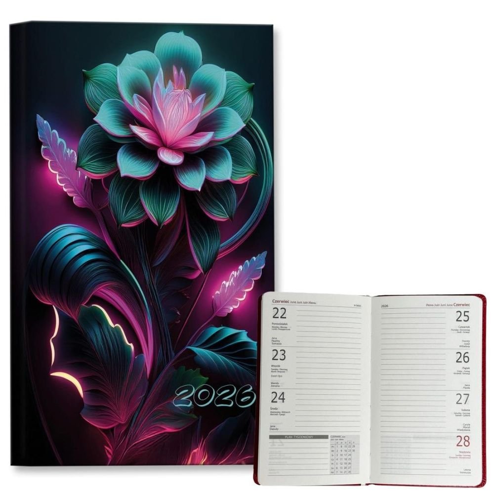 Kalendarz 2026 A6 tygodniowy Neonowe Kwiaty