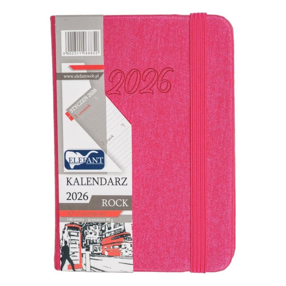 Kalendarz 2026 A7 tyg Rock różowy