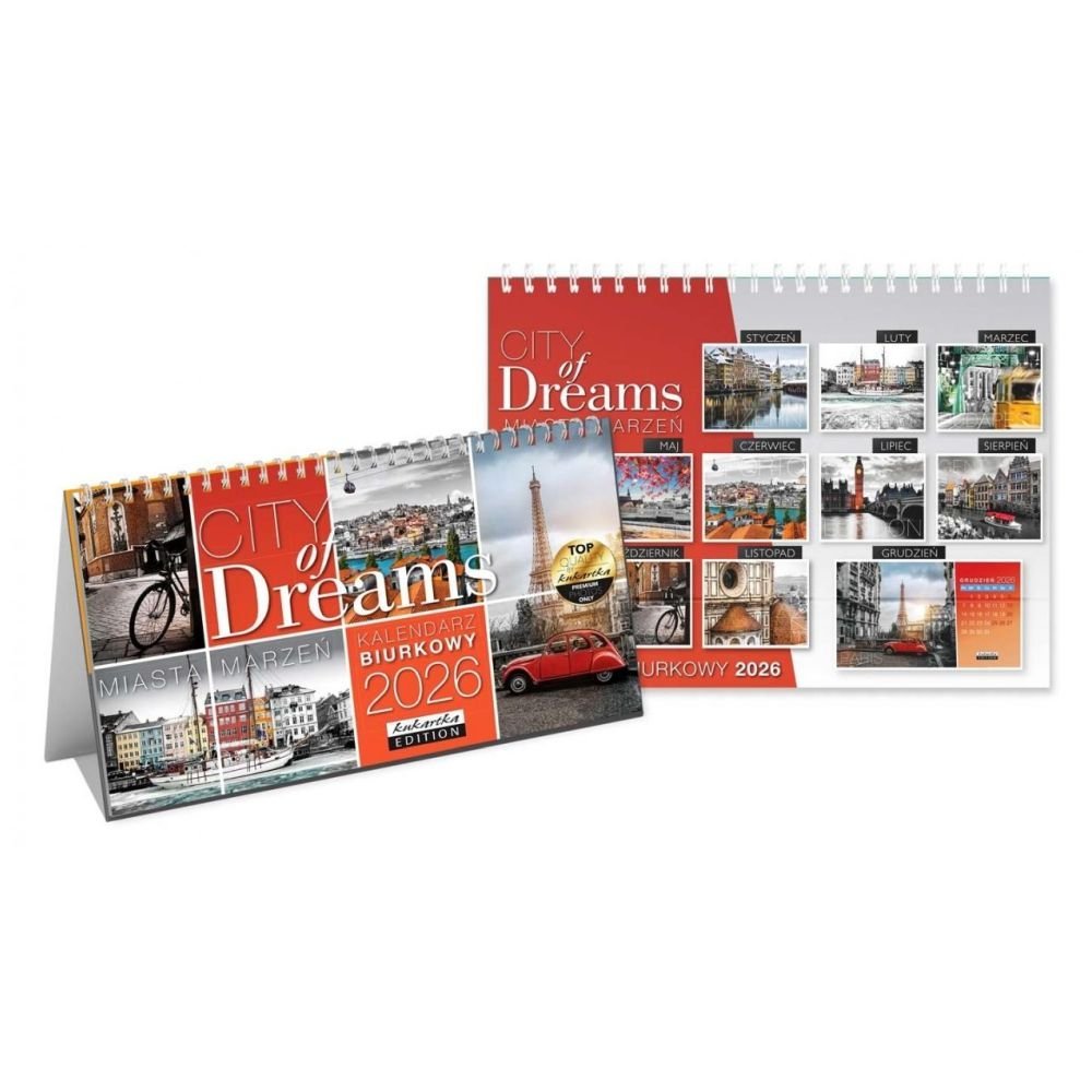 Kalendarz biurkowy 2026 City of dreams Kalendarz na biurko na rok 2026 z serii "City of dreams". Każdy miesiąc cieszy zdjęciem pięknego miasta. Kalendarz ma wymiary 21×12 cm Dodatkowe kalendarium na odwrocie z miejscem na notatki Styl: cytaty, nowoczesny, klasyczny, zdjęciowy Prezent: dodatkowe kalendarium styczeń 2027