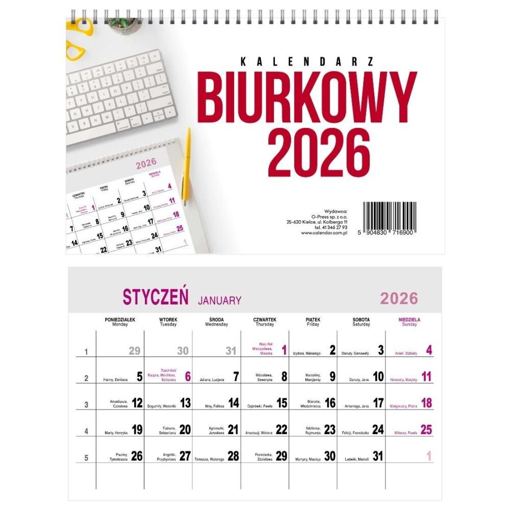 Kalendarz 2026 Biurkowy Miesięczny 24x15cm