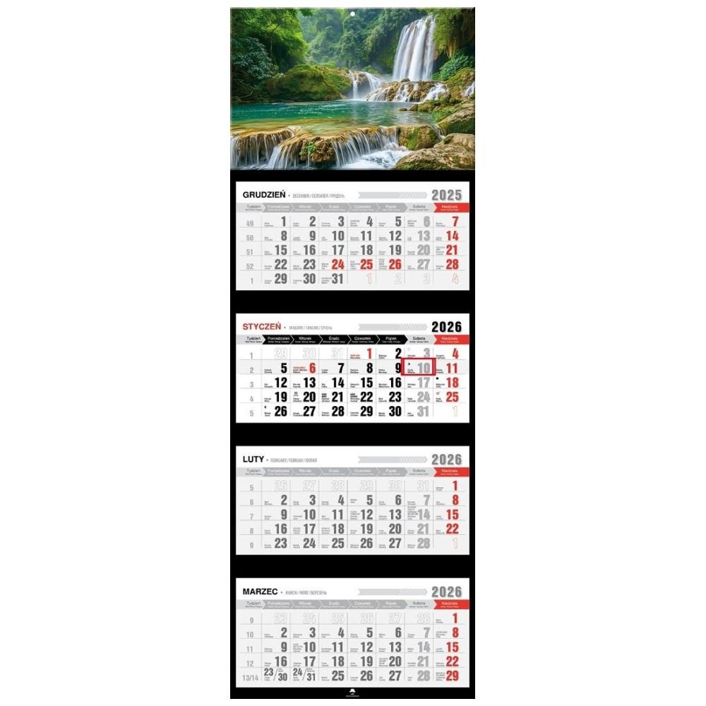 Kalendarz 2026 czterodzielny premium wodospad