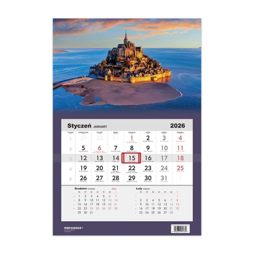 Kalendarz 2026 Jednodzielny Wzgórze Świętego Michała, Francja