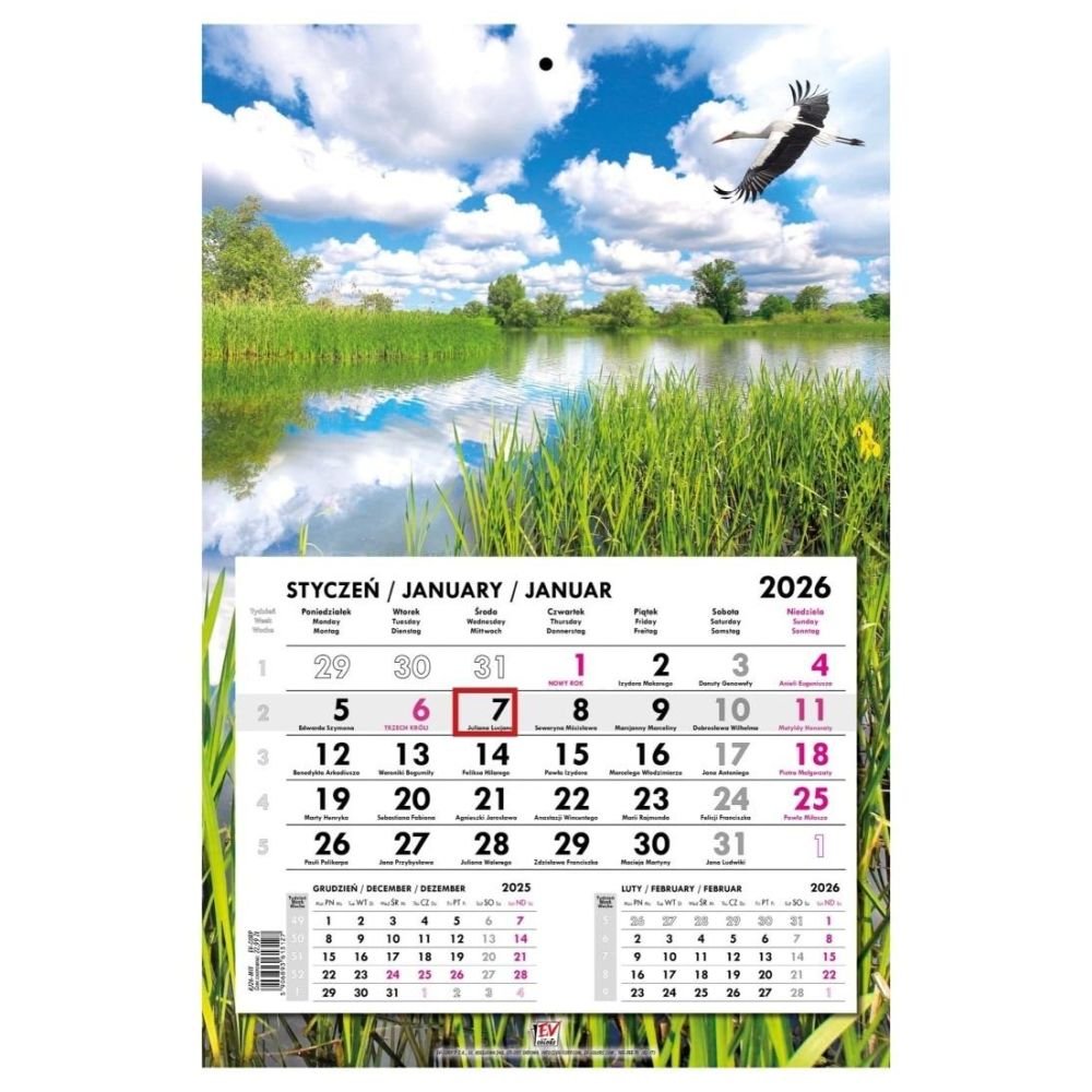 Kalendarz 2026 jednodzielny główka płaska Mazury