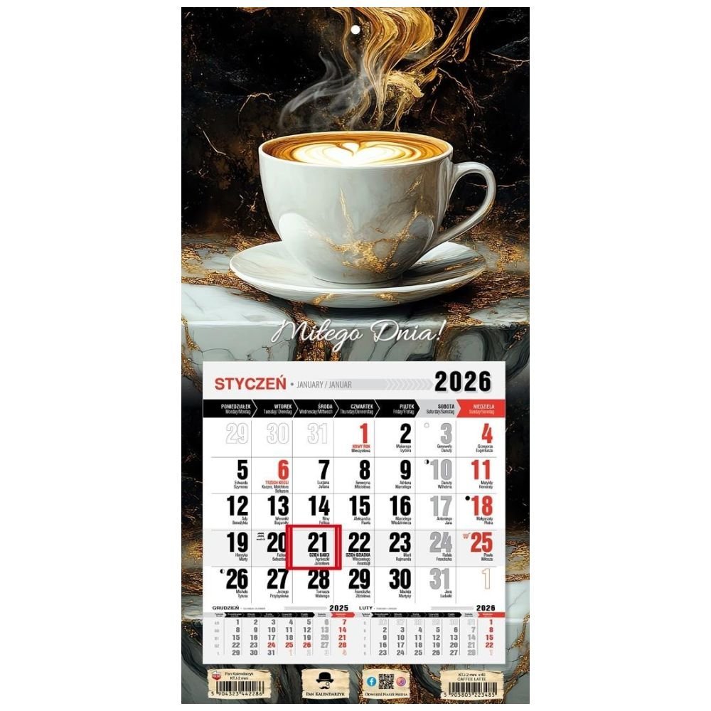 Kalendarz 2026 jednodzielny mini caffe latte