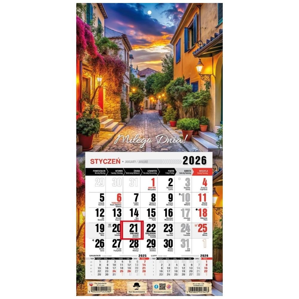 Kalendarz 2026 jednodzielny mini romantico