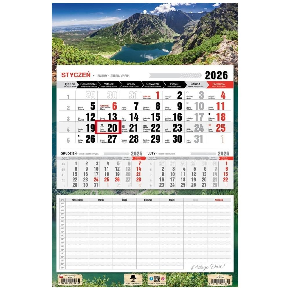 Kalendarz 2026 jednodzielny z planem zajęć Tatry