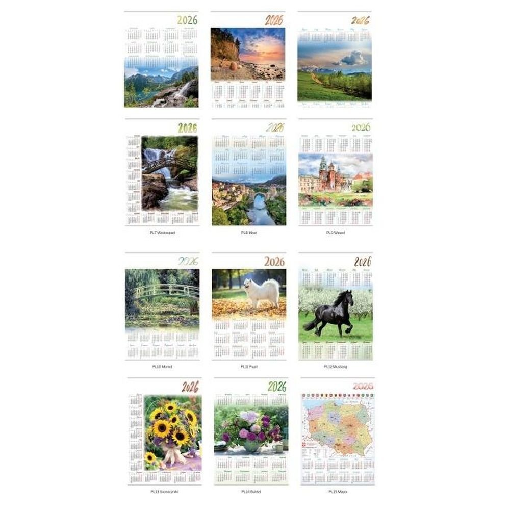Kalendarz 2026 Jednoplanszowy MIX 1 (15szt)