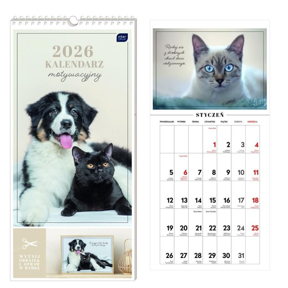 Kalendarz 2026 motywacyjny 22x46cm Zwierzaki