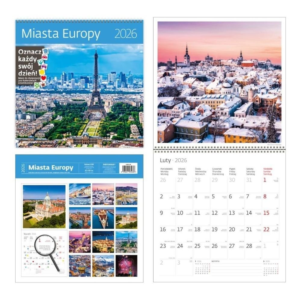 Kalendarz 2026 Miasta Europy 30×30 z naklejkami