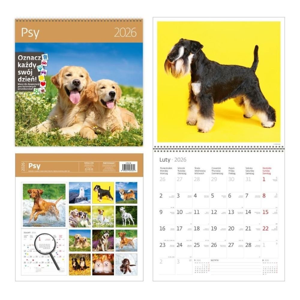Kalendarz 2026 Psy 30×30 z naklejkami