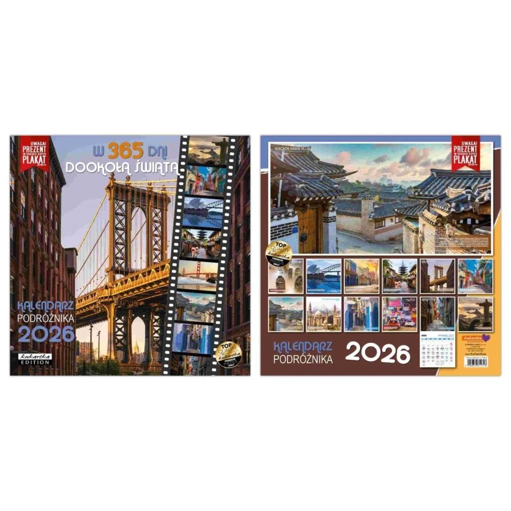 Kwadratowy kalendarz ścienny na rok 2026 z serii "365 dni dookoła świata".