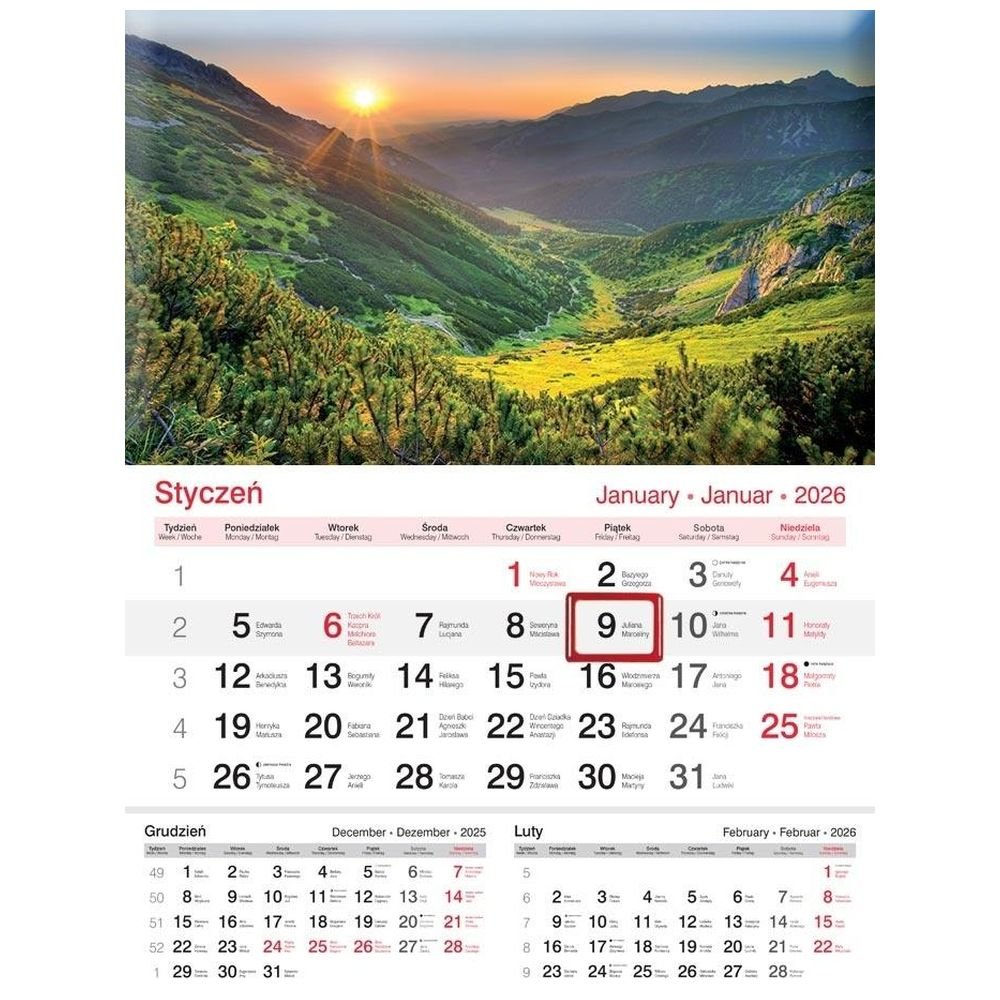 druk: zdjęcie jednostronny barwny + folia błysk; kalendarium jednostronny, barwny;