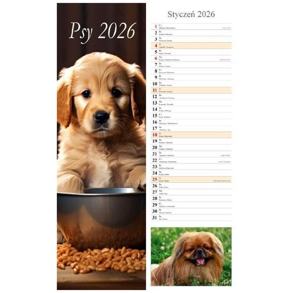 Kalendarz 2026 ścienny pasek Psy