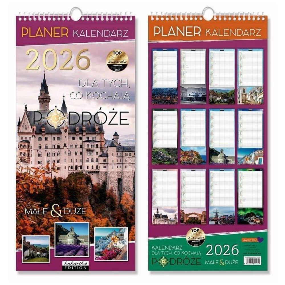 Planer 2026 Podróże Podłużny kalendarz ścienny na rok 2026 z serii "Podróże" Każdy miesiąc cieszy pięknym zdjęciem, które będzie wspaniałą ozdobą Waszego domu. Planer PODRÓŻE pozwoli być na bieżąco ze wszystkimi zajęciami każdego członka rodziny (podział na 4 osoby) – wszystkie treningi piłkarskie, zajęcia językowe, urodziny, wspólne wyjazdy – nic Cię już nie zaskoczy 🙂 Specyfikacje: Wielkość: 21 x 45 cm Kalendarium: można po nim pisać Styl: cytaty, nowoczesny, klasyczny, zdjęciowy