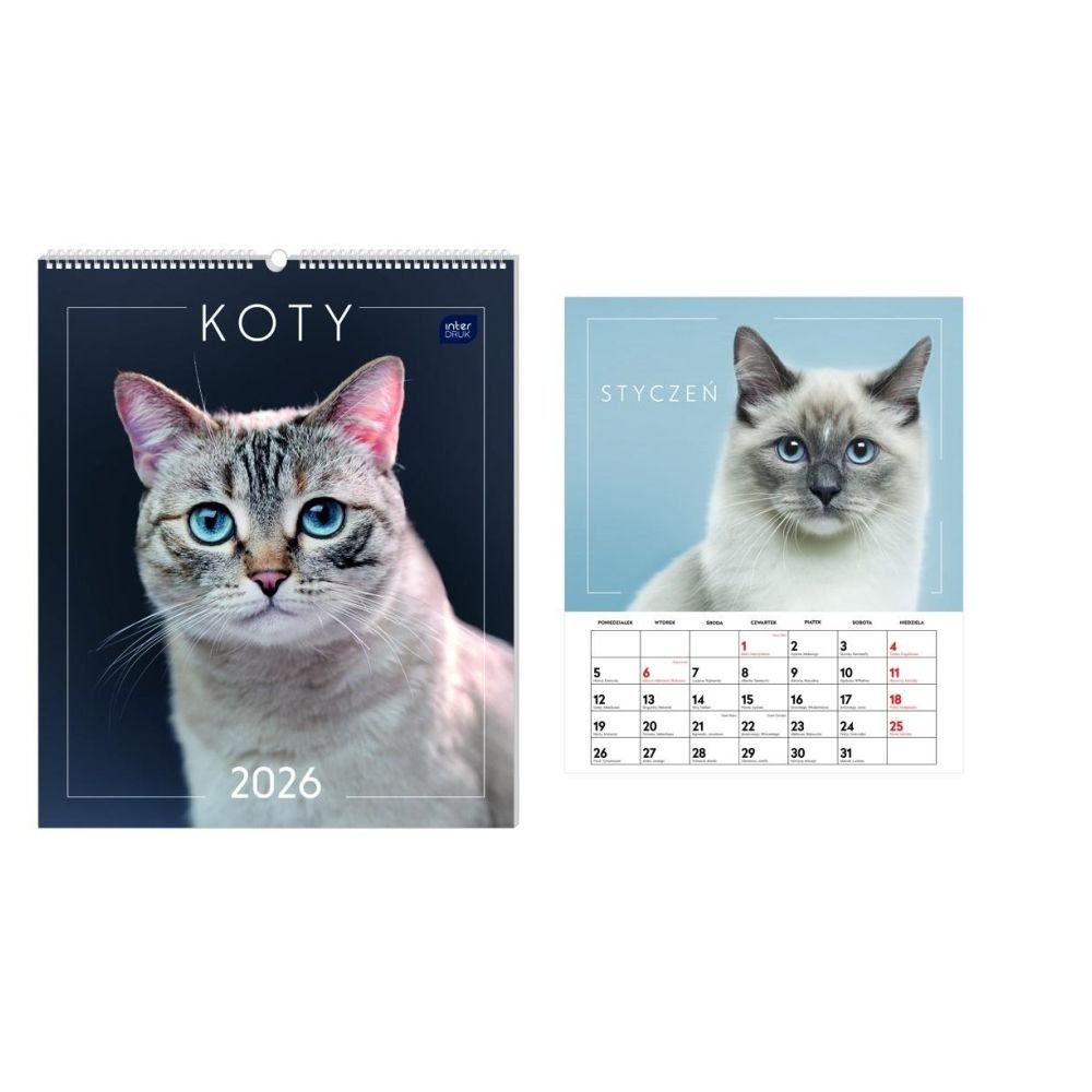 Kalendarz 2026 ścienny planszowy 33,5x40cm Koty
