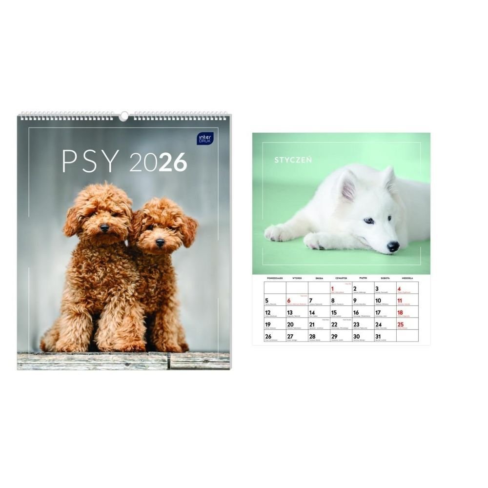 Kalendarz 2026 ścienny planszowy 33,5x40cm Psy