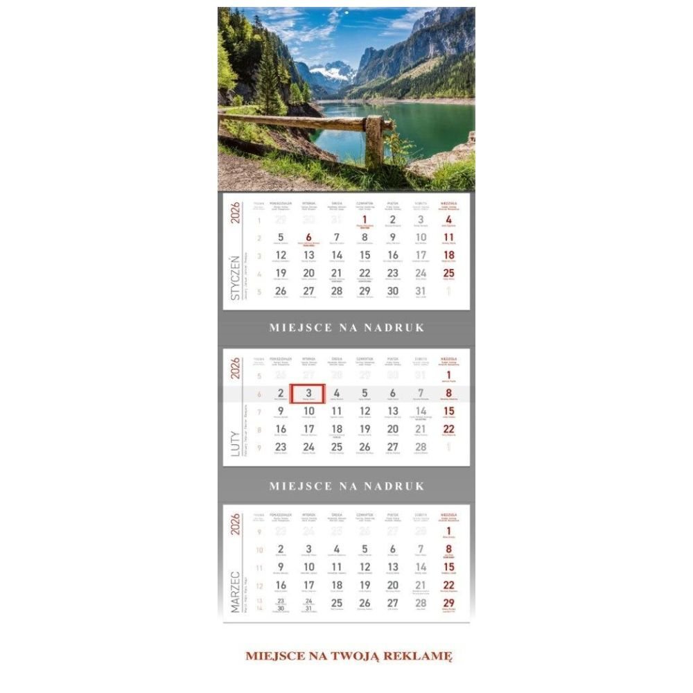 Kalendarz 2026 ścienny trójdzielny Górskie jezioro