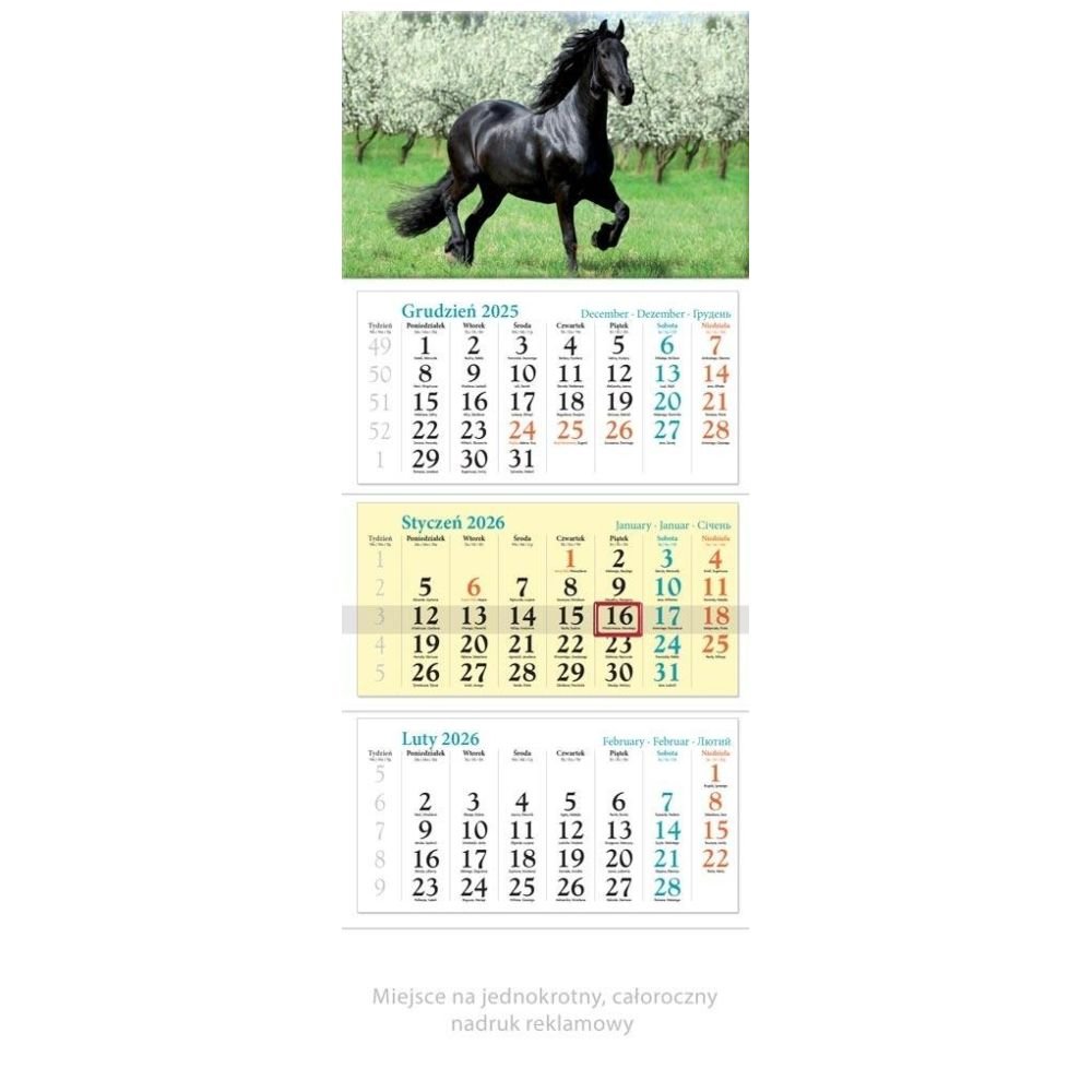 format kalendarza z "główką" i polem pod nadruk reklamowy 32 x 86 cm;