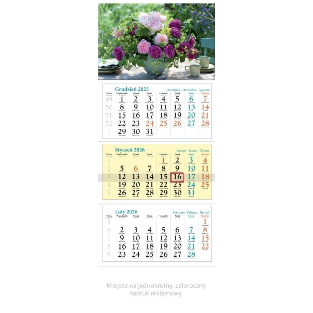 Kalendarz 2026 ścienny trójdzielny Kwiaty