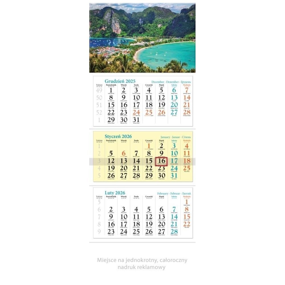 Kalendarz 2026 ścienny trójdzielny Wakacje