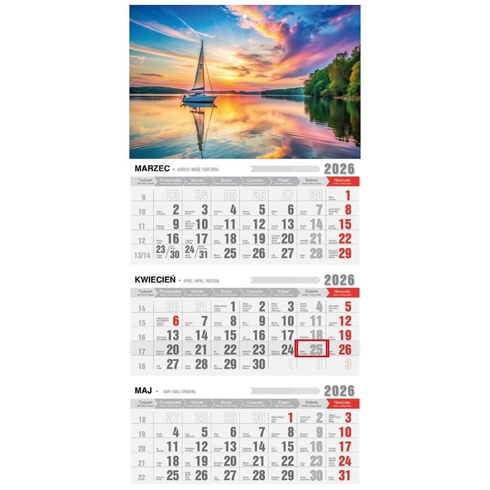 Kalendarz 2026 trójdzielny ekonomiczny mazury