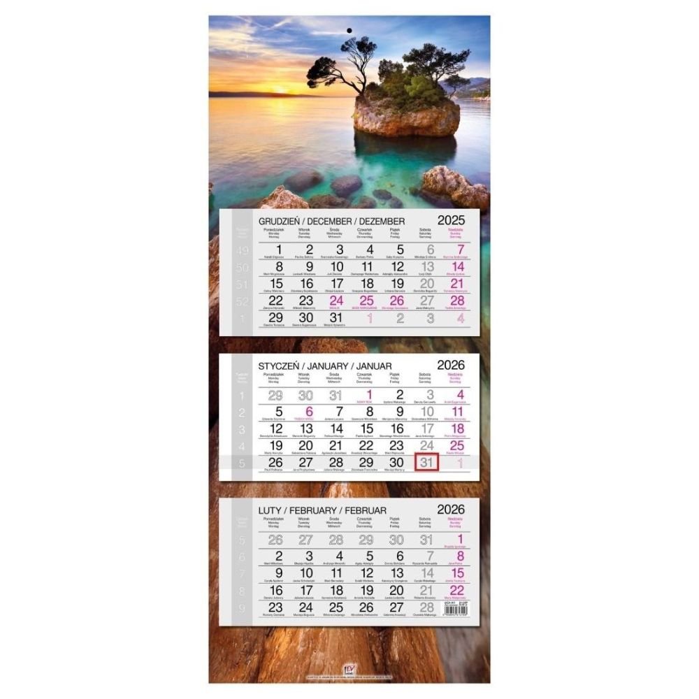 Kalendarz 2026 trójdzielny główka płaska Chorwacja
