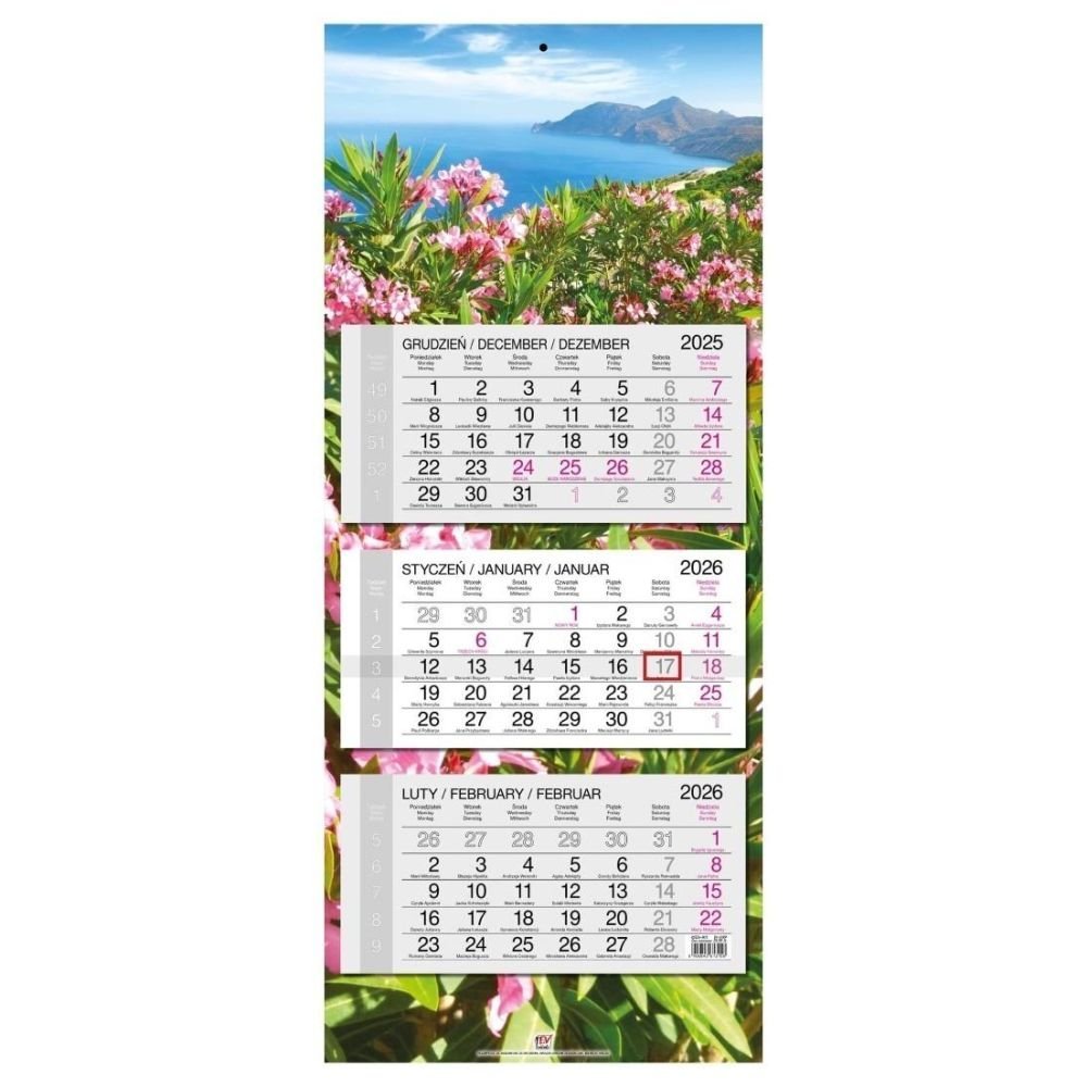 Kalendarz 2026 trójdzielny główka płaska Grecja
