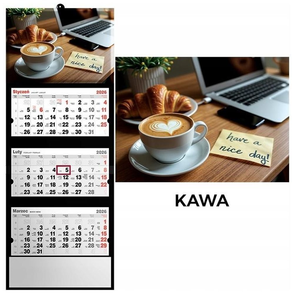 KALENDARZ TRÓJDZIELNY 2026 WYMIAR CAŁKOWITY KALENDARZA: 32 x 85,5cm GŁÓWKA KALENDARZA: Zdjęcie uszlachetniane folią błysk, z efektem wypukłości. KALENDARIUM: wym. 28,5 x 14 cm, trójjęzyczne (PL, GB, D), z numeracją tygodni i imieninami jest przytrzymywane przez kartonowe wypustki, które zapobiegają jego odstawaniu od plecków kalendarza. WYKOŃCZENIE: kartonowa zawieszka, pasek z czerwonym przesuwanym okienkiem, miejsce na notatki. WYMIAR ZDJĘCIA 32 x 22 cm ZDJĘCIE Z EFEKTEM WYPUKŁOŚCI: uszlachetnione folią błysk.