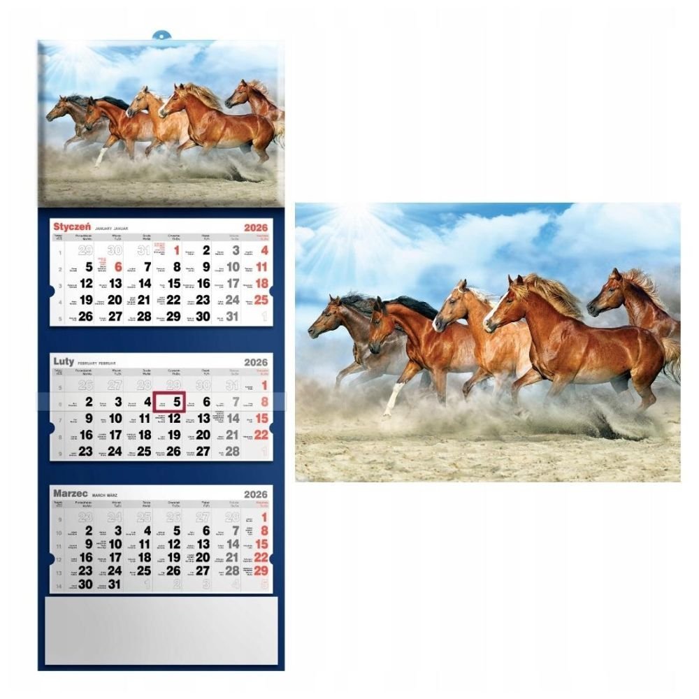 Kalendarz 2026 trójdzielny konie