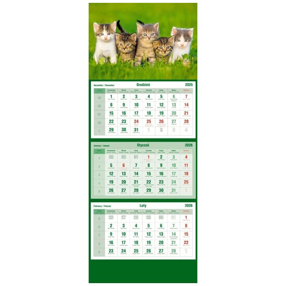 Kalendarz 2026 trójdzielny Koty