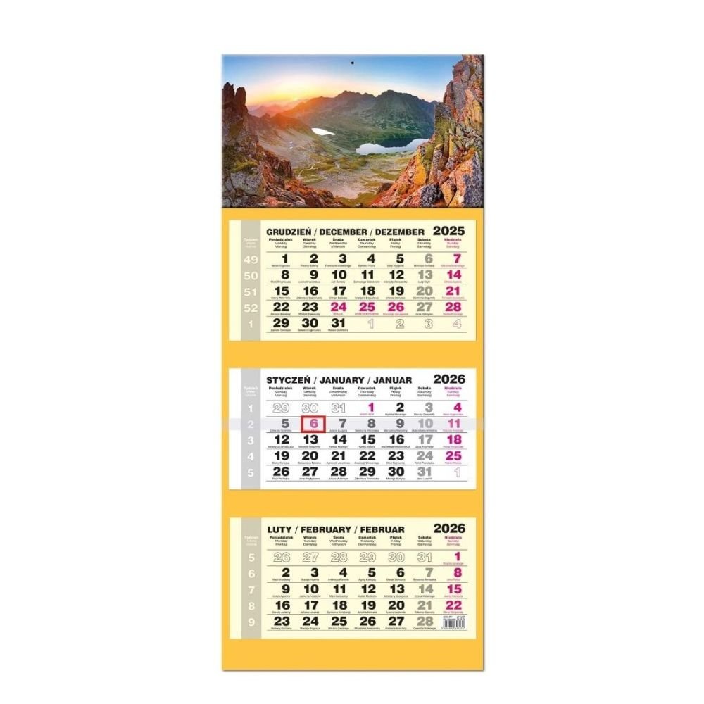 Kalendarz 2026 trójdzielny LUX gł. wypukła Tatry