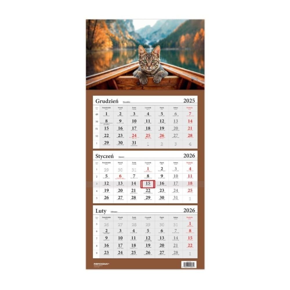Kalendarz 2026 trójdzielny Lux Kot w łódce HELMA