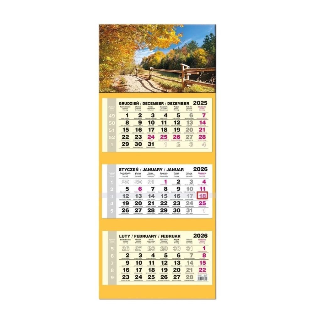 Kalendarz 2026 trójdzielny LUX wypukły Krajobrazy