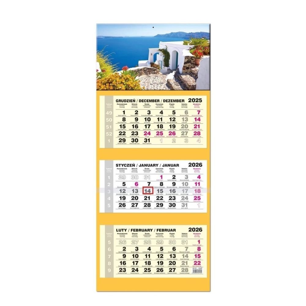 Kalendarz 2026 trójdzielny LUX wypukły Santorini