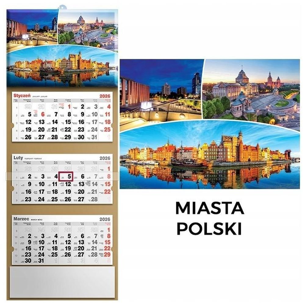 Kalendarz 2026 trójdzielny panorama polski
