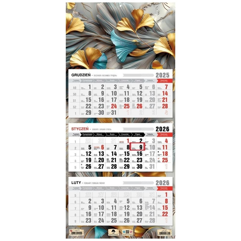 Kalendarz 2026 trójdzielny płaska główka abstrakcj