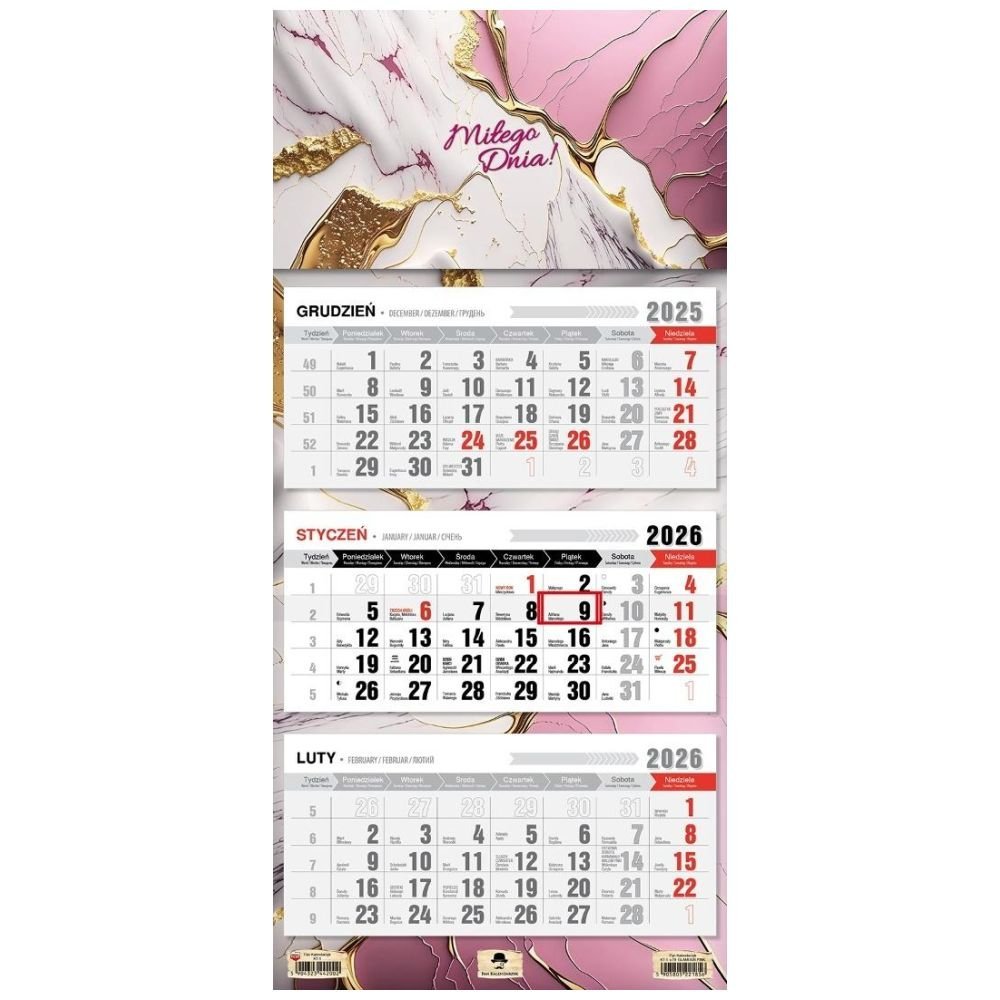 Kalendarz 2026 trójdzielny płaska główka glamour