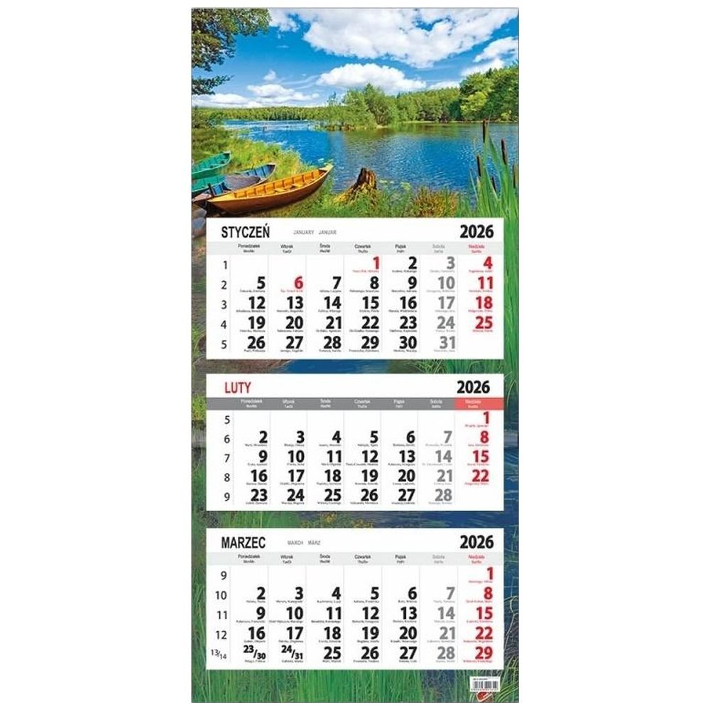 Kalendarz 2026 trójdzielny płaska główka Jezioro
