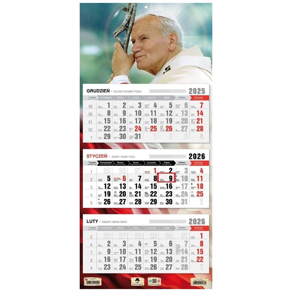 Kalendarz 2026 trójdzielny płaska główka JP II