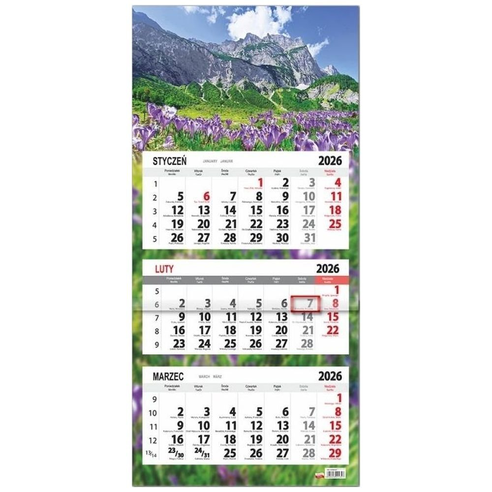 Kalendarz 2026 trójdzielny płaska główka Krokusy