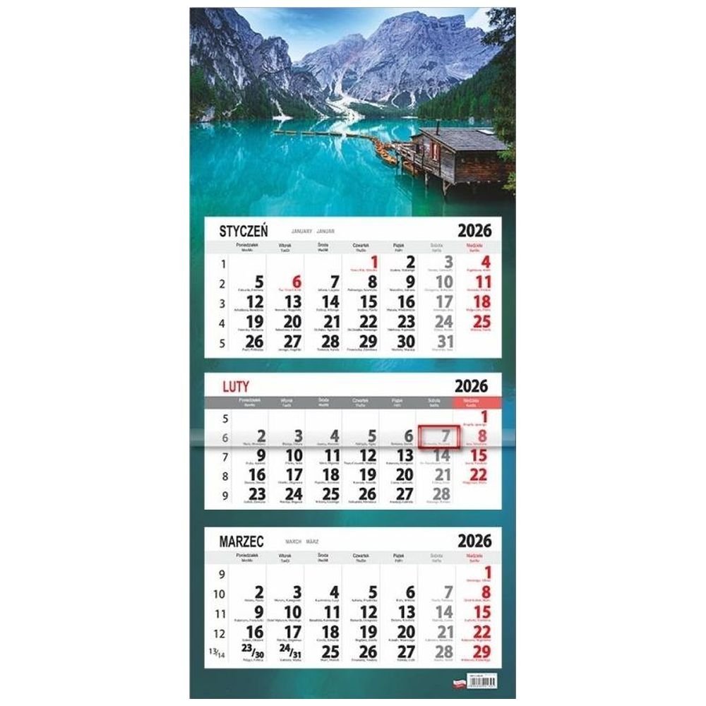 Kalendarz 2026 trójdzielny płaska główka Lazur