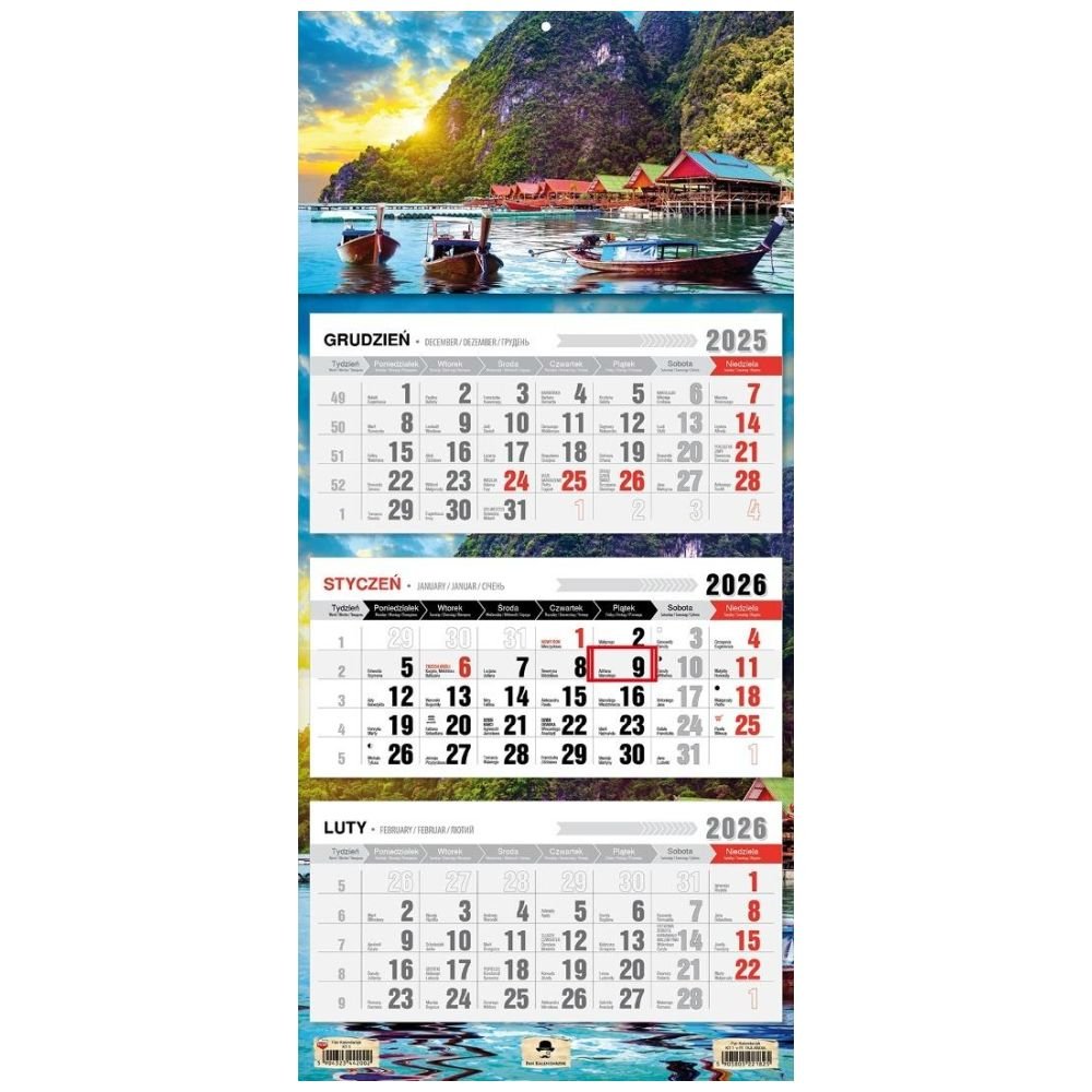 Kalendarz 2026 trójdzielny płaska główka Tajlandia