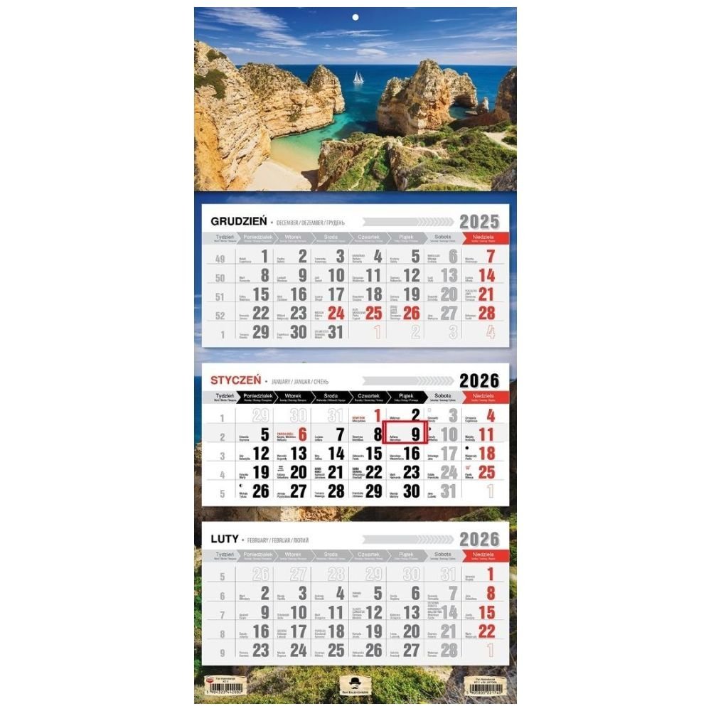 Kalendarz 2026 trójdzielny płaska główka zatoka
