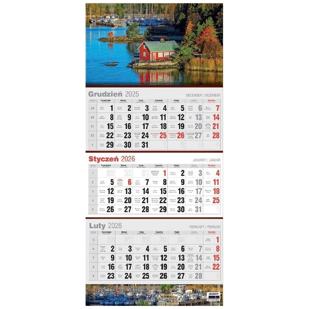 Kalendarz 2026 trójdzielny płaski MIX