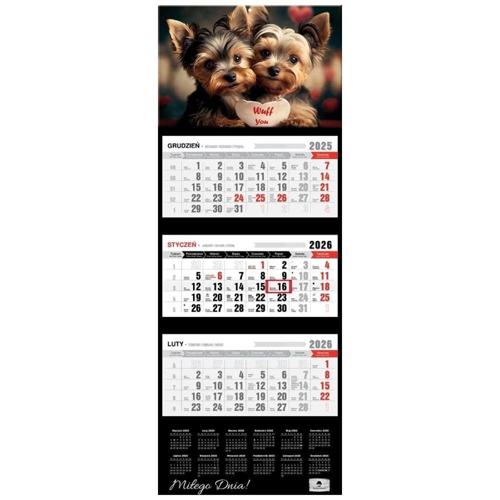 Kalendarz 2026 trójdzielny premium pieski