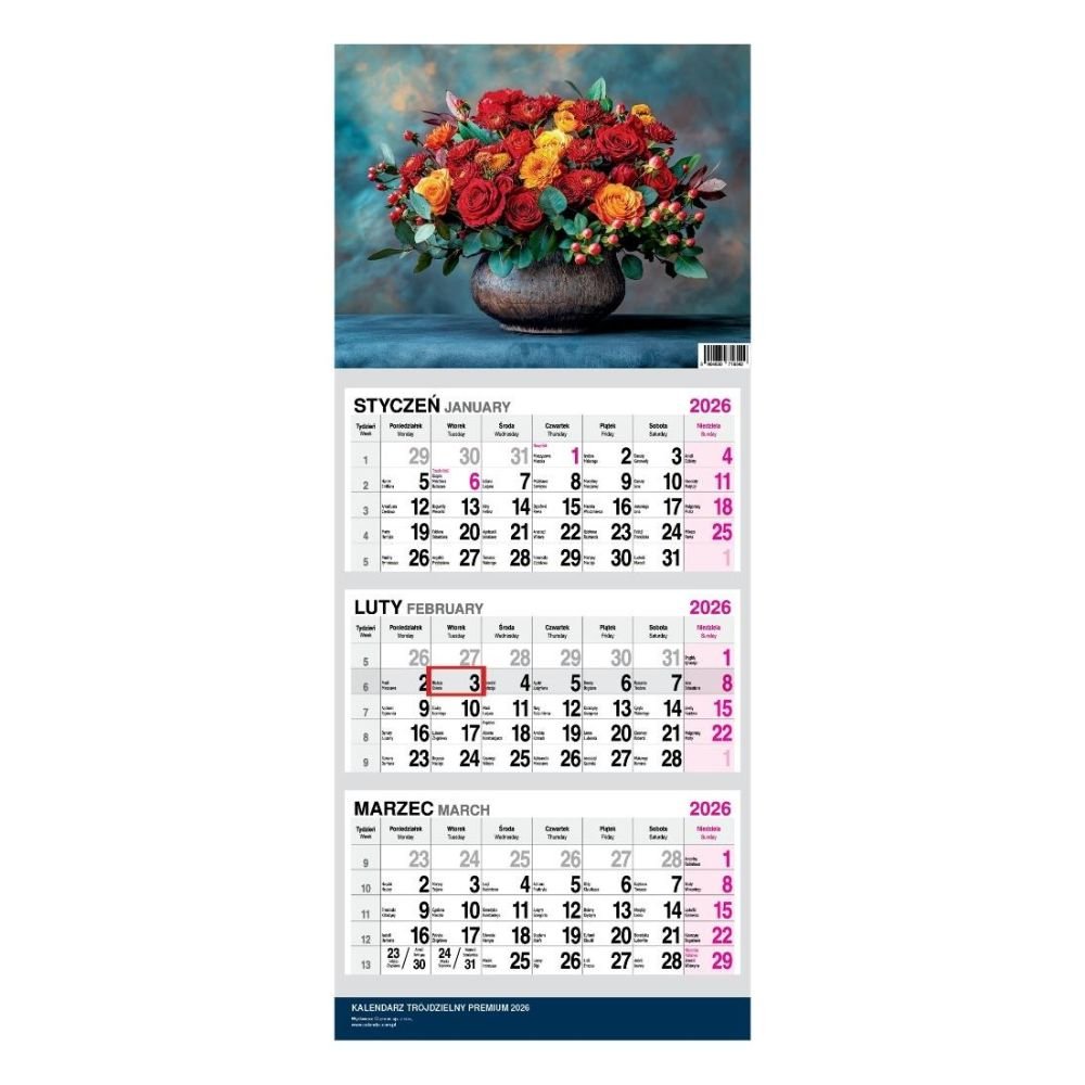 Kalendarz 2026 Trójdzielny Twarda Główka Bukiet
