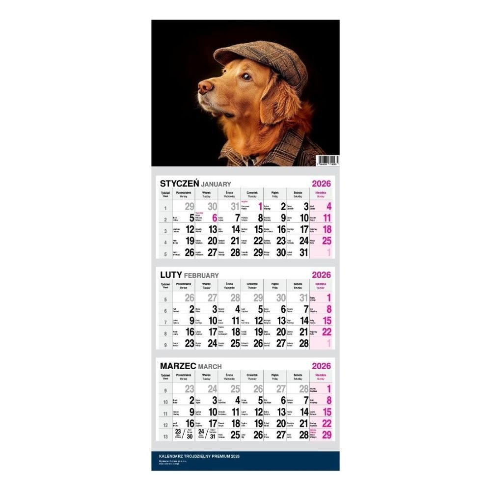 Kalendarz 2026 Trójdzielny Twarda Główka Pies