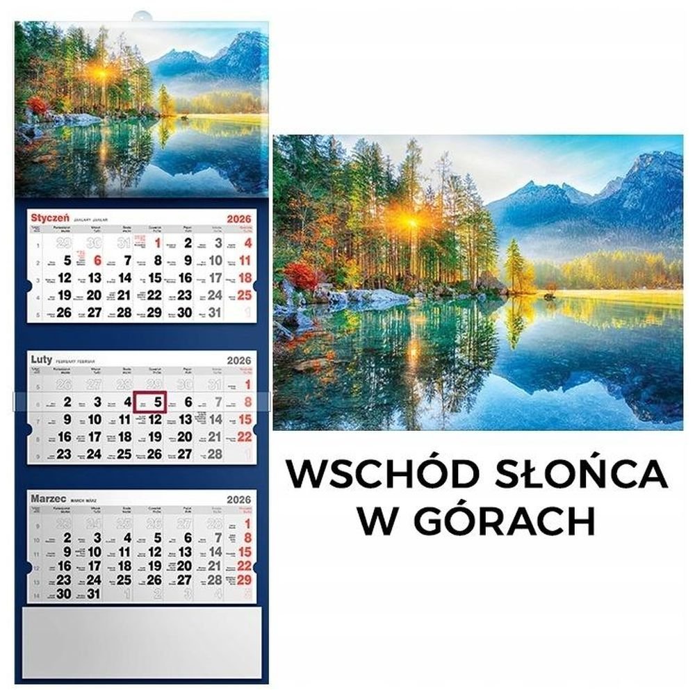 Kalendarz 2026 trójdzielny wschód słońca