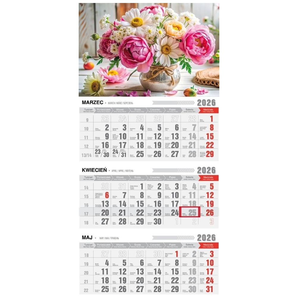 Kalendarz 2026 trójdzielny z magnesem bukiet